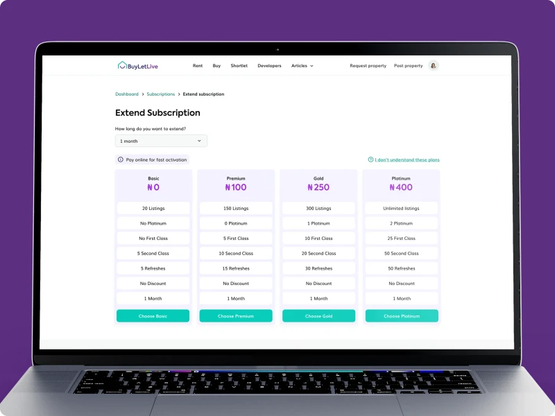 - Integrated subscription plans for agents to advertise and boost their listings on the platform.