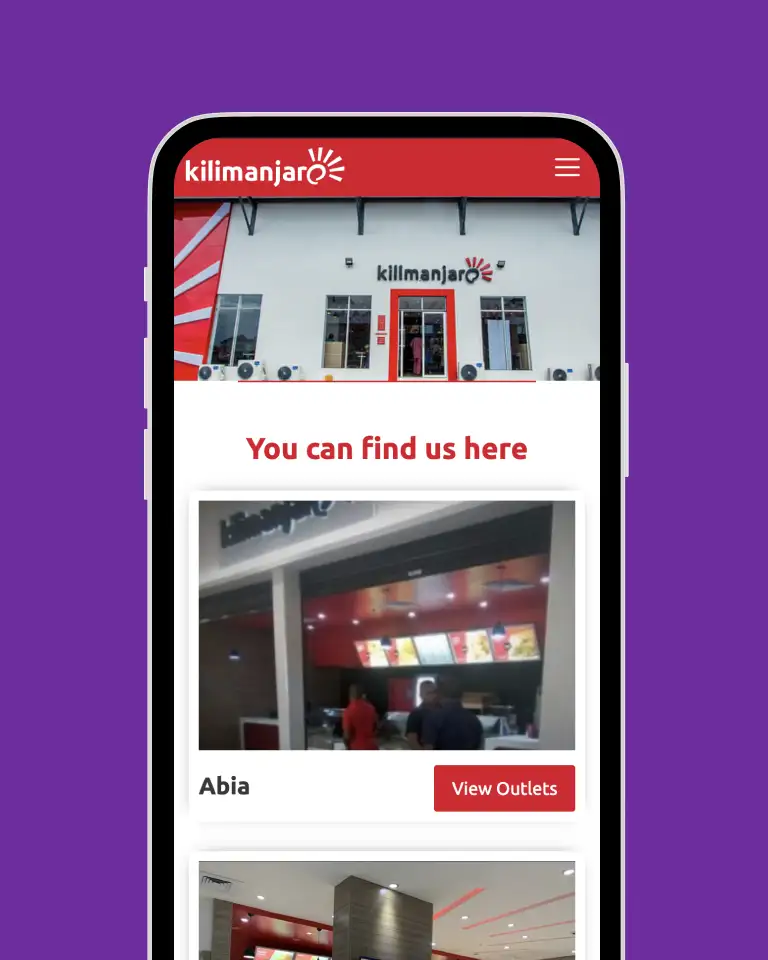 Our collaboration with Kilimanjaro focused on enhancing their online presence and improving the overall customer experience. We developed a user-friendly app that simplifies the ordering process, enabling customers to easily select their location and browse the menu. We focused on the mobile experience with a mobile-first web app and also a mobile app availble on Android & iOS.