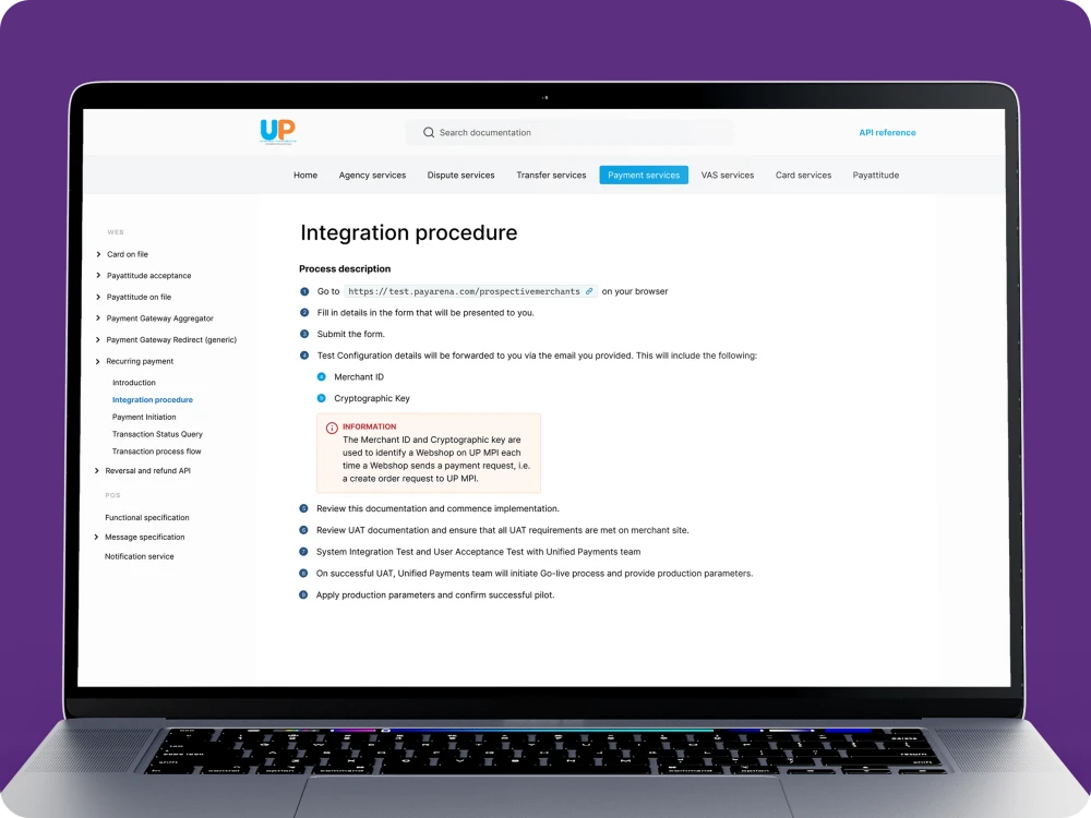 Our collaboration with Unified Payments focused on enhancing the ease of onboaring new businesses by easily understandable documentation and portal for developers.